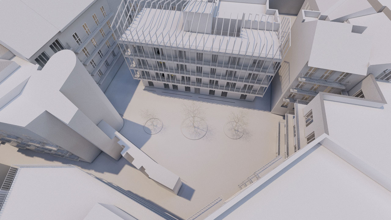 Bloque de viviendas consistente de cuatro plantas residenciales, más bajo comerciales. Distribuido en cuatro edificios ubicados en la misma parcela.